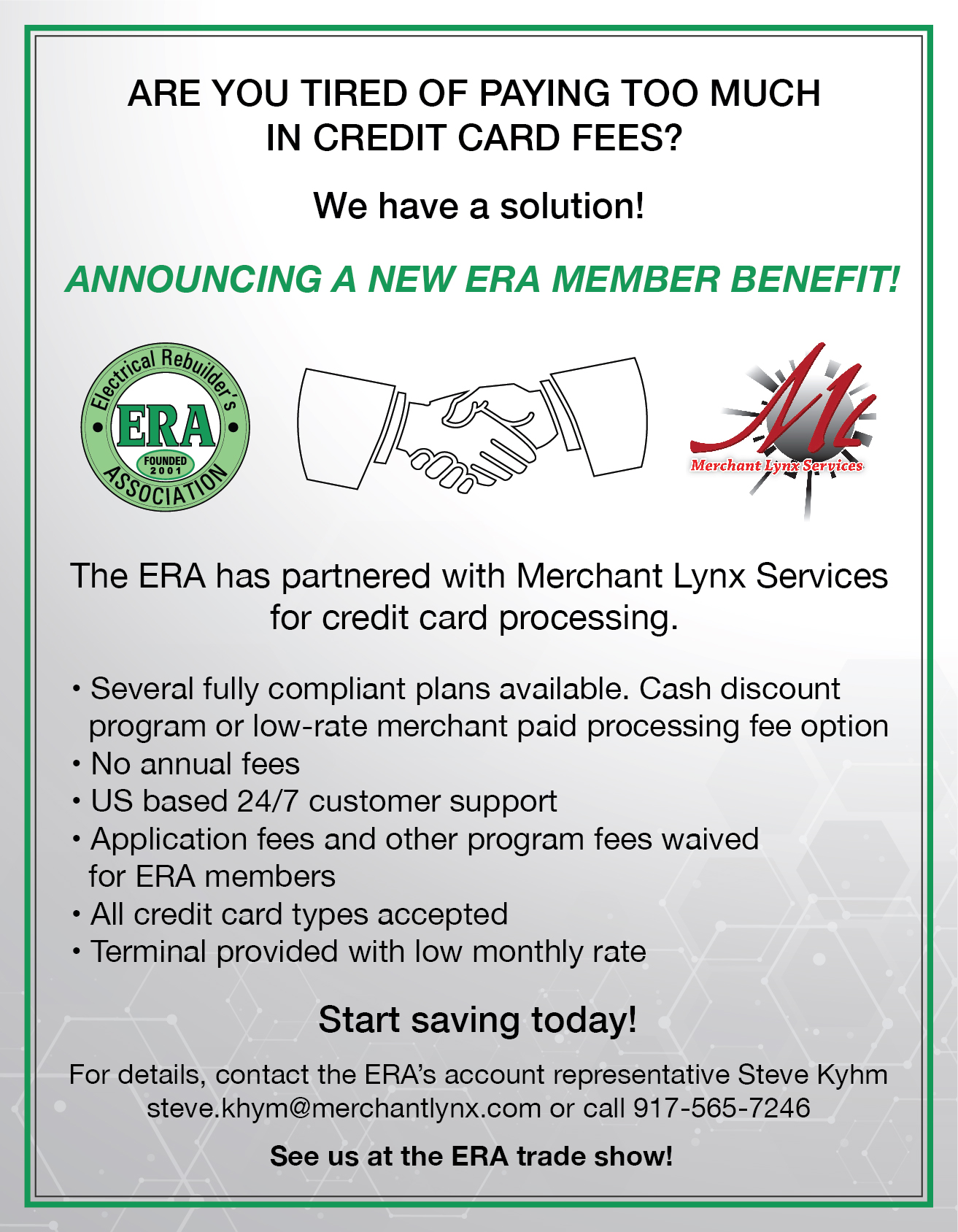 When you become an ERA member, you gain immediate access to many different small business services and discounts, a forum composed of industry experts and fellow rebuilders and a wealth of valuable information. Together, these resources can help you lower your costs, boost your profits and deal with the unique challenges of running your electrical rebuilding business.